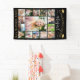 Félicitez et reconnaissez votre diplômé avec 15 photos au fil des ans pour un panneau de bannière de collage photo amusant pour tout le monde à profiter à la fête de remise des diplômes. Personnalisé avec le nom du diplômé dans un script moderne et élégant manuscrit et votre texte personnalisé ci-dessous avec le titre FÉLICITATIONS accentué avec des bouchons de graduation en feuille métallique en faux or. La couleur noire de l'arrière - plan peut être changée en une couleur d'école, un thème de fête ou une couleur préférée, ou changer n'importe quel style de police de texte, taille, couleur ou emplacement dans EDIT. ASSISTANCE : Pour obtenir de l'aide sur la modification/la personnalisation de la conception, le changement de couleur, le transfert de la conception vers un autre produit ou si vous souhaitez coordonner des éléments, contactez le concepteur AVANT DE COMMANDER via l'onglet MESSAGE Conversation Zazzle ou par courriel à l'adresse makeitaboutyoustore@gmail.com.