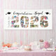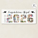Celebrate your Class of 2026 graduate with this modern, trendy white banner sign with 41 photos in the shape of the numbers 2026. Personalize the text at the top of the banner; the sample shows "Congratulations Name" accented with graduation caps. Text and graphic colors to coordinate with school or party theme colors. BANNER OPTIONS: The sample is shown in the 2.5x6' indoor style--other sizes and "outdoor" are available on the ordering page as well as the option of transferring the design to a foam board, poster or other product or have the designer convert it to an instant digital download file for local printing PRIOR to personalizing it. ASSISTANCE: For design assistance, contact the designer BEFORE ORDERING via the Zazzle Chat MESSAGE tab or email makeitaboutyoustore@gmail.com.