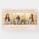 Ajoutez une touche personnalisée élégante aux décorations de la fête de remise des diplômes de l'université ou du secondaire avec une bannière personnalisée 3 photo collage. Les images et toutes les formulations de ce modèle sont simples à personnaliser, et les couleurs sont faciles à changer avec l'outil de design Zazzle. Le design rose et or est composé d'un casquette de tableau de mortier à faux papier, d'une calligraphie manuscrite branchée, d'une typographie moderne et chic et minimaliste et de trois photos de votre choix, telles que des images de haut niveau ou des images de la cérémonie de début. Veuillez noter que l'or est imprimé en couleur et non en métal. Ce grand panneau de remise des diplômes peut être accroché sur un mur pour accueillir les invités à la célébration ou utilisé comme fond de cabine photo amusant et élégant. Félicitations au diplômé !