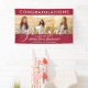 Ajoutez une touche personnalisée élégante aux décorations de la fête de remise des diplômes de l'université ou du secondaire avec une bannière personnalisée 3 photo collage. Les images et toutes les formulations de ce modèle sont simples à personnaliser, et les couleurs sont faciles à changer avec l'outil de design Zazzle. Le design rouge et blanc présente une calligraphie manuscrite branchée, une typographie moderne et chic et minimaliste, et trois photos de votre choix, telles que des images de haut niveau ou des images de la cérémonie de début. Ce grand panneau de remise des diplômes peut être accroché sur un mur pour accueillir les invités à la célébration ou utilisé comme fond de cabine photo amusant et élégant. Félicitations au diplômé !