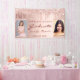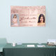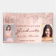 Une bannière pour une fête de graduation girly et glamour pour deux diplômés. Un arrière - plan métallique à l'aspect faux rose d'or avec un élégant faux or rose, gouttes de parties scintillant rose, look goutte à goutte de peinture. Personnalisez et ajoutez vos propres 2 photos du diplômé. Texte ; Félicitations. Le texte : Graduate, et les noms sont écrits avec un script de style manuscrit moderne.