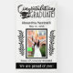 Une bannière de graduation blanche et verticale avec détails noirs. La bannière dit "Félicitations diplômés" avec casquette de diplôme et icônes de diplôme. Cette bannière convient aux diplômés féminins ou masculins. Téléchargez la photo haute résolution de votre diplômé et entrez le nom, la date et le nom de l'université ou du collège fréquenté. De chaque côté de l'espace photo encadré noir a de beaux feuilles de laurier noir. Le bas de la bannière dit "Nous sommes fiers de vous !" Cette phrase peut être customisée si vous préférez un libellé différent. Félicitations bannière diplômée, bannière photo de graduation en noir et blanc, bannière de graduation simple, bannière photo de graduation simple, bannière de graduation unisex, bannière feuille de laurier, feuilles de lauréat de graduation, bannière de graduation verticale,