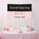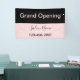 Une bannière permet à chacun de savoir que votre nouveau salon de beauté est ouvert aux affaires. Le texte rose pâle en haut dit "Grand Ouverture". Le texte rose est sur une bande noire. Une bande rose en bas a un élégant script noir pour le nom du salon de beauté. Des chiffres d'affichage noirs sont également disponibles pour le numéro de téléphone du salon.