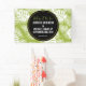 Banderole mariage avec un motif répétitif de grands feuilles de palmiers sur un arrière - plan vert olive. Moderne tendance et tropical. Un cercle noir avec une bordure intérieure dorée superposée avec vos détails personnalisés à l'intérieur.