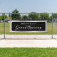 Bannière d'ouverture personnalisable pour votre nouvelle petite entreprise. L'arrière - plan présente un graphique en papier gris argenté clair et foncé avec un rectangle noir. Vous pouvez customiser le style de police et la couleur blanche grise.
