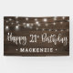 Guirlande lumineuse rustique sur bois pour bannière d'anniversaire pour annoncer leur 21e anniversaire avec style ! Le revêtement en bois rustique et les guirlandes lumineuses dégagent un espace pour votre texte personnalisé. Idéal pour les fêtes d'anniversaire et les réceptions ! Facile à personnaliser avec du texte, des polices et des couleurs. Vous pouvez même changer la couleur de la typographie !
