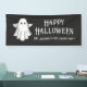 Un fantôme d'Halloween mignon et Éffrayant sur une bannière de soirée noire et blanche.
