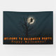 Banderole de la fête d'Halloween avec sorcière, lune en vue et arbre éffrayant. Option pour inclure un message personnalisé pour cette touche spéciale.