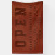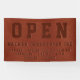 Customisez cette bannière unique et attrayante brun faux vegan cuir Open Business avec nom d'entreprise et heures d'ouverture. Conception créée avec 3 couches de typographie audacieuse dans différentes nuances pour simuler l'aspect en relief. Un panneau élégant et professionnel pour votre entreprise ou votre école.