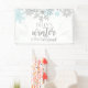 Bannière de premier anniversaire Winter Onederland avec des flocons de neige en parties scintillant bleue et argent.