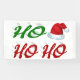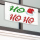 Bannière avec ho ho ho en texte vert et rouge 3D et casquette Père Noël. Disponible en plusieurs tailles pour intérieur et extérieur.