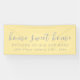 Bienvenue invités à votre soirée de ménage avec élégance élégante. Cette élégante bannière "Home Sweet Home" de la fête de la maison comporte un message élégant "Welcome to Our New Home", l'adresse de rue et la date établie en écriture moderne sur un arrière - plan jaune clair. Personnalisez avec votre message personnalisé ou votre nom de famille, adresse ou date d'établissement, ou utilisez le bouton "contacter ce concepteur" pour obtenir de l'aide. Le message "Home Sweet Home" est un design en couches, affiché en écriture manuscrite grise gratuite avec des ombres blanches en lin clair, donnant une profondeur de perspective à la conception. Le message personnalisé "Bienvenue à notre nouvelle maison", l'adresse de rue et la date établie sont présentés dans une typographie noire gratuite. Créez votre propre bannière de soirée personnalisée en utilisant les champs fournis. Vous pouvez customiser plus loin en sélectionnant "personnaliser" et en accédant à la section calques pour visualiser les images et modifier la couleur arrière - plan ou d'autres éléments de conception selon votre goût, ou en utilisant le bouton "contacter le concepteur" pour obtenir de l'aide. Une façon parfaite d'accueillir les invités dans votre nouvelle maison et votre soirée de ménage moderne et élégant.