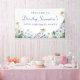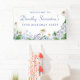 Un beau signe de bienvenue avec le facteur Wow qui impressionne vos invités. Les hydrangées bleues et violettes douces se mélangent à des roses sauvages blancs et bleus. Le nom du célébrant d'anniversaire est écrit dans une police de caractères facile à lire. l'année d'anniversaire suit dans une police serif traditionnelle en gras. Tout le texte est modifiable pour vous permettre de customiser votre accueil.
