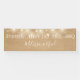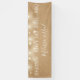 Une bannière de fête de fiançailles personnalisée amusante avec de jolies guirlandes lumineuses sur un fond kraft rustique. Conçue par Thisisnotme©
