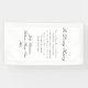 Custom “In Loving Memory” Elegant, White, Wedding Memorial Banner with scripted font– Custom Names & Poem Honor those who are forever in your heart with this “In Loving Memory” wedding banner. Thoughtfully designed with soft calligraphy and a touching quote, this banner creates a quiet space of remembrance on your special day. Personalize the names below the verse to celebrate loved ones who couldn’t be there physically but are deeply present in spirit. A heartfelt and elegant way to reserve a seat or add a memorial display at your ceremony or reception. Includes editable tribute quote and custom names Optional: change font style, size, and position in the editor Soft script paired with modern typography White fabric background – timeless and serene Indoor use – perfect for weddings, vow renewals, and memorials Let your wedding honor every part of your love story — past and present.