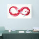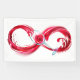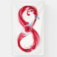 Infinity symbole of continuous stream of red pouring into glass glass glass on white background.