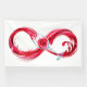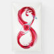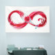 Infinity symbole of continuous stream of red pouring into glass glass glass on white background.