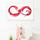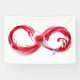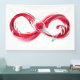 Infinity symbole of continuous stream of red pouring into glass glass glass on white background.