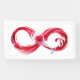 Infinity symbole of continuous stream of red pouring into glass glass glass on white background.
