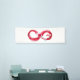 Infinity symbole of continuous stream of red pouring into glass glass glass on white background.