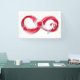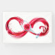 Infinity symbole of continuous stream of red pouring into glass glass glass on white background.