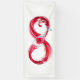 Infinity symbole of continuous stream of red pouring into glass glass glass on white background.