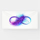Infinity symbole with a beautiful feather painted in purple and blue bright colors on white background