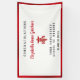 Serviettes de fête de fin d'études dans les couleurs de l'école de rouge. Jolie bordure en satin rouge sur blanc. Conception élégante avec red Caduceus pour votre infirmière diplômée. Personnalisez avec votre nom, le nom de l'école et l'année de l'obtention du diplôme.
