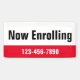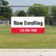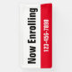 Cette bannière extérieure est rouge vif, noire et blanche. Vous pouvez modifier le texte pour répondre à vos besoins. Vous pouvez ajouter votre message personnalisé (indiqué : Inscription en cours) et votre numéro de téléphone. Le dessus est blanc avec du texte noir. Le bas est rouge vif avec du texte blanc pour votre numéro de téléphone ou le texte personnalisé. Tout le texte peut être modifié ou supprimé.