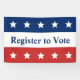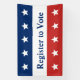 Vous pouvez encourager l'inscription des électeurs dans votre communauté. Le haut est un champ bleu qui a cinq étoiles blanches. La bande médiane est blanche et dit 'Inscrivez-vous pour voter' en bleu foncé. La bande de fond est rouge avec cinq étoiles blanches.