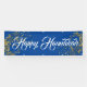 Cette bannière de vacances est présentée dans le style extérieur avec des grommets. Choisissez à l'intérieur ou à l'extérieur, avec ou sans grommets. Montré en bleu avec le texte blanc "Happy Hanoukka" dans un script sophistiqué avec deux tourbillons d'étoiles à l'aspect or à chaque extrémité. Customisez ou achetez comme prévu.
