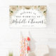 Une bannière de mariage d'accueil avec d'élégants bouquets floraux en ivoire et feuillage. Le modèle facile à customiser est conçu avec script de calligraphie et police cursive.