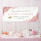 Célébrez son jalon en style avec cette bannière de graduation girly, avec des sections d'aquarelle rose vif parées de parties scintillant en faux or dans les coins supérieur gauche et inférieur droit. Les mots "Félicitations à notre Grad" (ou le texte de votre choix) apparaissent dans un élégant script d'écriture gris-fusain au-dessus du nom de votre diplômé en rose vif sans serif police. Ci-dessous, ajoutez le nom de son école et son année de graduation en charcoal sans serif. Les confettis en or Faux flottent sur le bord supérieur, et un casquette en parties scintillant d'or faux mortier apparaît en bas à gauche.