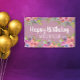 Banderoles d'anniversaire mignonnes et girly rose et violet aquarelle florale et verdoyante pour filles et femmes de tout âge. Texte dans une police de script mignonne et fantaisiste dit "Joyeux anniversaire." Personnalisez avec le nom de l'invité d'honneur. Contactez-moi pour obtenir de l'aide sur la personnalisation ou pour demander des produits Zazzle supplémentaires personnalisables pour votre groupe.