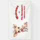 Banderole de Noël avec l'illustration d'un adorable cerf de bébé. Grands yeux grands oreilles avec une grande tête et des petits bois bruns. Portant un gros arc rouge. À côté d'une pile de cadeaux.
