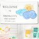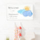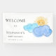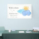 La bannière d'accueil baby shower de ce mignon garçon est décorée de nuages d'aquarelle et d'un joli soleil souriant. Facile à personnaliser. Aquarelle originale © Michele Davies.