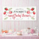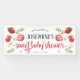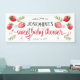 Bannière "baby shower sucré" sur le thème des fraises, avec des illustrations d'aquarelle de fraises rouges juteuses, de verdure et de fleurs blanches.