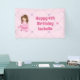 Cette adorable bannière d'anniversaire rose de princesse présente le dessin d'une jolie petite brune portant une belle robe de bal rose. Personnalisez ce joli décor d'anniversaire pour enfants avec le nom de votre enfant entre le motif de coeur amusant.