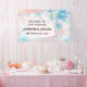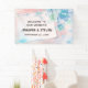 Bannière de bienvenue mariage. Conçu avec de belles fleurs bleues sur un arrière - plan rose. Image d'une page de carnet en forme de rectangle superposée pour vous permettre d'écrire votre texte à l'intérieur.