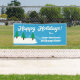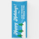 Bannière Joyeuses Fêtes pour un défilé de Noël ou affichage à domicile ou en vitrine montrant des pins sur la neige sur un fond bleu. Modifiez le texte pour votre nom, entreprise ou groupe.