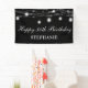 Cette bannière de 30e anniversaire joyeuse présente des lumières et des pots de mason suspendus sur un arrière - plan noir. Personnalisez-le avec un nom.