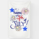 Design disant "Joyeux 4 juillet !" avec étoiles et feux d'artifice tout autour.