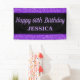 Cette bannière de 60e anniversaire joyeuse présente une parties scintillant faux violet. Personnalisez-le avec un nom.