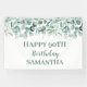 Moderne, élégant, eucalyptus, aquarelle été 90e anniversaire Bandeau de bienvenue. Bannière rustique et verdoyante. Parfait pour elle pour Anniversaire. Vous pouvez le personnaliser avec un nom et une date.