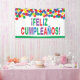 Joyeux anniversaire de Feliz Cumpleaños bannière en d'Espagnol/Español partie. Humeur colorée pour votre fiesta ! Ballons dans le motif lumineux de couleurs avec les lettres multicolores appropriées aux fêtes d'anniversaire d'enfants ou d'adultes.