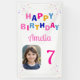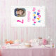 Bannière de Fond de Photo Fille Étoiles Roses Joyeux Anniversaire. Ce fond d'anniversaire coloré et amusant est parfait comme décoration de fête d'anniversaire pour fille. Personnalisez la bannière avec votre nom, photo et âge.