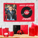 Décorez votre fête d'anniversaire dans le style rockin' avec cette bannière de fête d'anniversaire de disque vinyle rétro avec une photo de votre petit rocker. Rouge clair, noir et blanc. Un disque vinyle personnalisé avec un éclair au centre de ce design rock and roll. Joyeux voeux d'anniversaire dans un style de graffiti décontracté. Tout le texte et les couleurs peuvent être customisés.