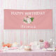 Belle bannière de fête d'anniversaire vintage et verdoyante rose vif avec le texte "Joyeux anniversaire" et customisé avec un nom.