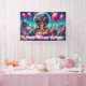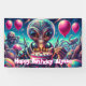 Bannière d'anniversaire personnalisée sur le thème des Aliens. Un gâteau extraterrestre mangeant avec un casquette d'anniversaire allumé. Ajoutez un peu d'humour à l'anniversaire de quelqu'un avec cette jolie bannière de fête d'anniversaire.