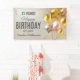 Faites savoir à tout le monde que c'est un anniversaire spécial de quelqu'un avec cette bannière festive de haute qualité avec des faux ballons d'or. Ajoutez l'âge et le nom de la personne qui vient d'accoucher. Trendy et chic mais amusant et classique - parfait pour toute célébration d'anniversaire d'âge.
